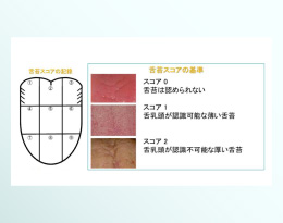 舌の表面を9分割し、舌苔の厚さで口腔内の清潔度を評価します。